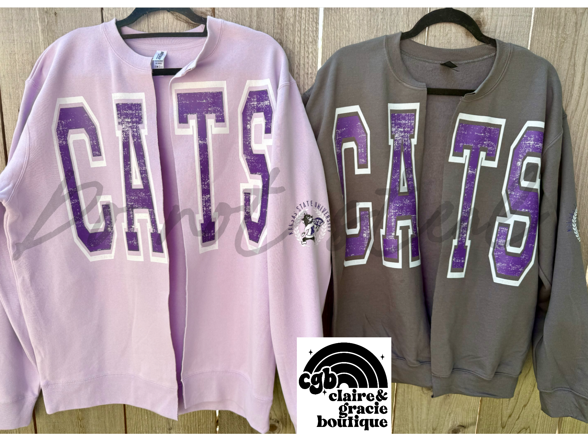The newest trend is oh so cute! Graphic on the sleeve says go Kansas State.